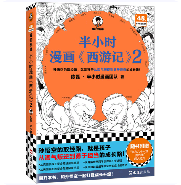 内容简介 : 陈磊(笔名:混子哥)领衔的半小时漫画团队仅仅通过诙谐的语言和手绘漫画的形式,就捋清了《西游记》的故事主线和精神内核:取经路上的打怪故事,故事背后的成长道理。 从大战灵感大王时的莽撞,到身陷盘丝洞时学会做事不要逞强,从勇闯狮驼岭学会动脑解决问题,到最终从灵山取得真经,才学会坚持到底才能成功…… 读着读着你会发现,孙悟空的取经路就是孩子从淘气叛逆到勇于担当的成长路! 翻开本书,和孙悟空一起打怪成长升级!